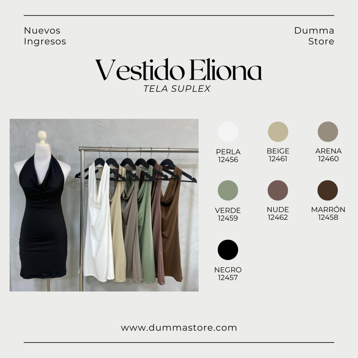 Vestido Eloina en tela suplex con cuello halter y elástico en la espalda, ideal para un look moderno y cómodo. Su diseño estiliza la silueta mientras el elástico en la espalda brinda un ajuste perfecto y favorecedor. Perfecto para outfits casuales y salidas de temporada con estilo juvenil.