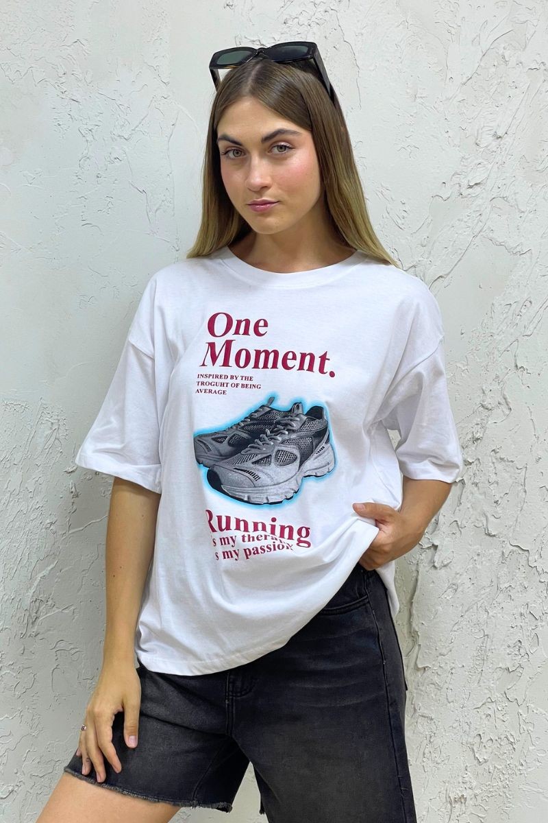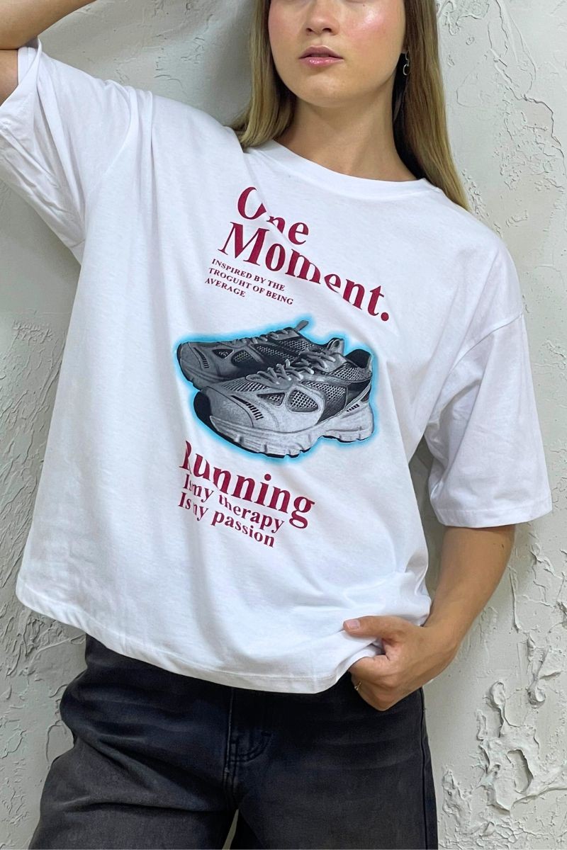 El básico perfecto con un toque urbano. Confeccionado en jersey de algodón 30/1, es suave, ligero y cómodo para usar todo el día. Su fit oversize brinda un estilo relajado y moderno, mientras el estampado de zapatillas le da un aire street que eleva cualquier outfit casual.