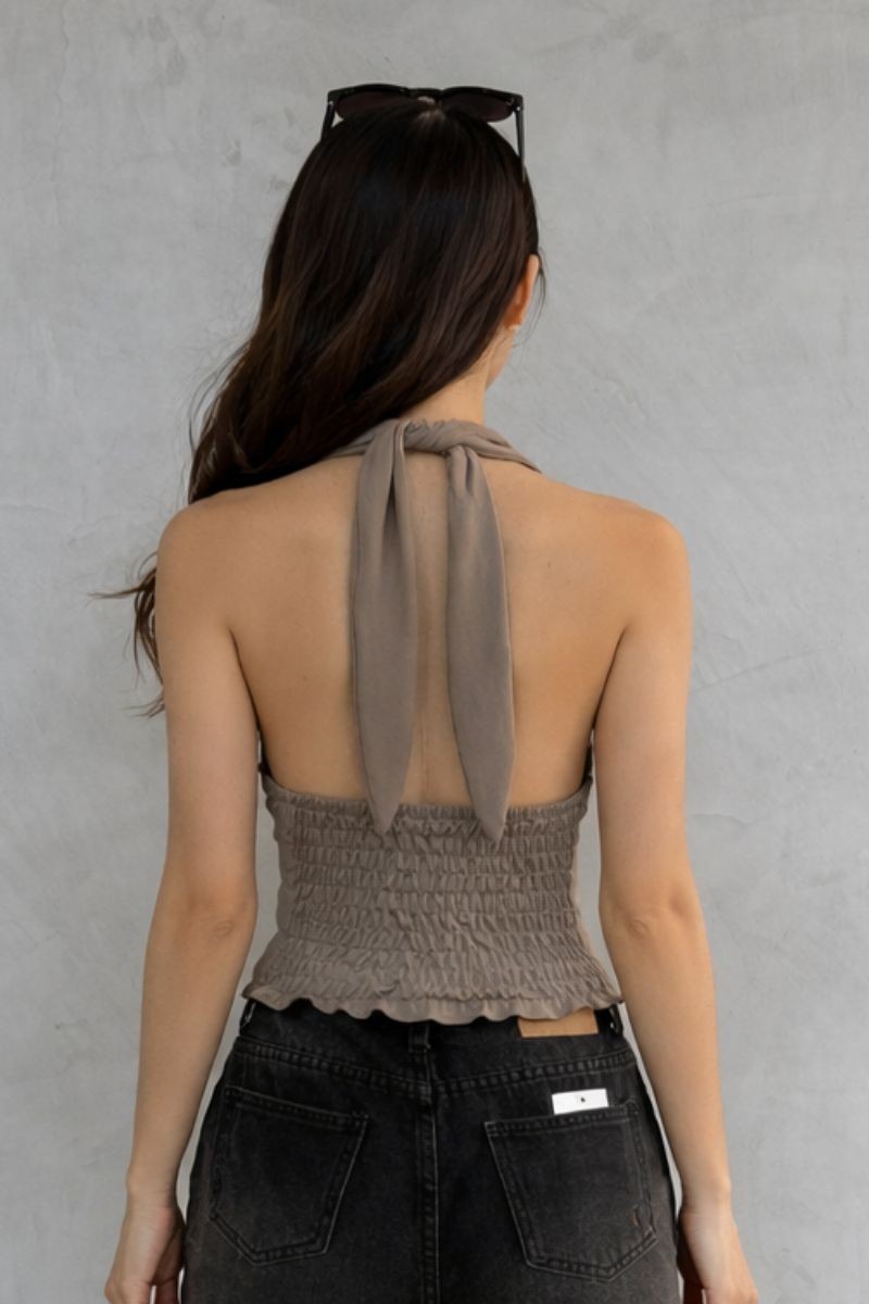 Ajuste perfecto con un toque femenino y moderno. Confeccionado en tela suplex con doble forro que evita transparencias, brinda seguridad y comodidad. Su escote en V con amarre al cuello estiliza la parte superior, mientras la espalda con acabado multiaguja se adapta al cuerpo realzando la silueta. Ideal para looks versátiles con un aire sofisticado.