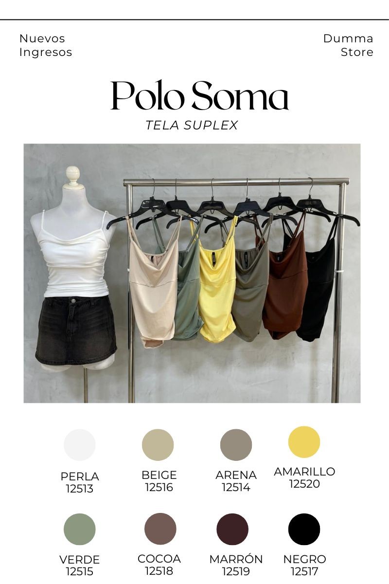 El Polo Soma es la prenda ideal para elevar tus outfits con un estilo moderno y femenino. Confeccionado en tela suplex de alta calidad, se adapta cómodamente al cuerpo brindando suavidad, elasticidad y un calce favorecedor. Su doble forro aporta mayor seguridad y estructura, mientras que el diseño manga cero, las tiras regulables y el escote en caída realzan la silueta con un toque sofisticado y sensual. Además, su recogido en los costados estiliza la figura y crea un efecto visual moderno que destaca en cualquier look, desde outfits casuales hasta combinaciones más elevadas. Perfecto para chicas que buscan un polo versátil, cómodo y en tendencia, ideal para usar de día o de noche.