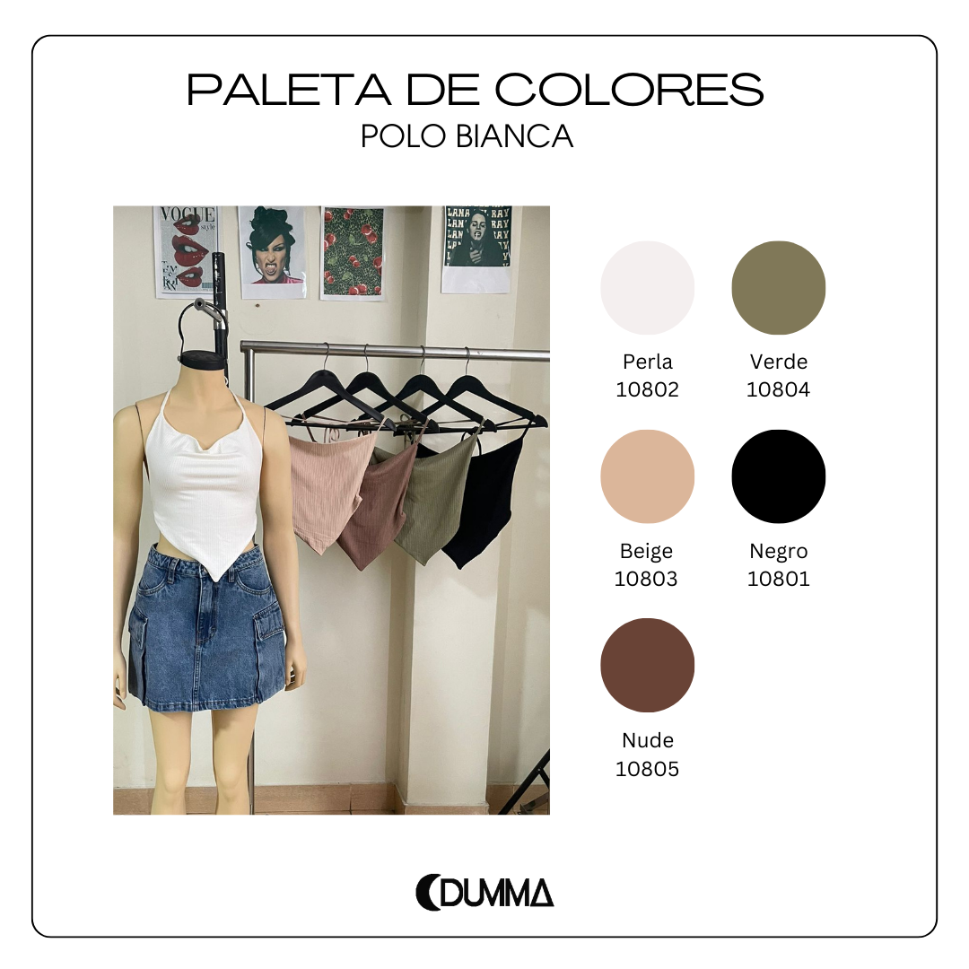 Ligero, coqueto y con un toque único. Confeccionado en rib acanalado, se adapta suavemente al cuerpo. Cuenta con detalle para amarrar al cuello, basta en punta que estiliza la silueta y espalda con elástico para un mejor ajuste. Ideal para looks femeninos y versátiles.