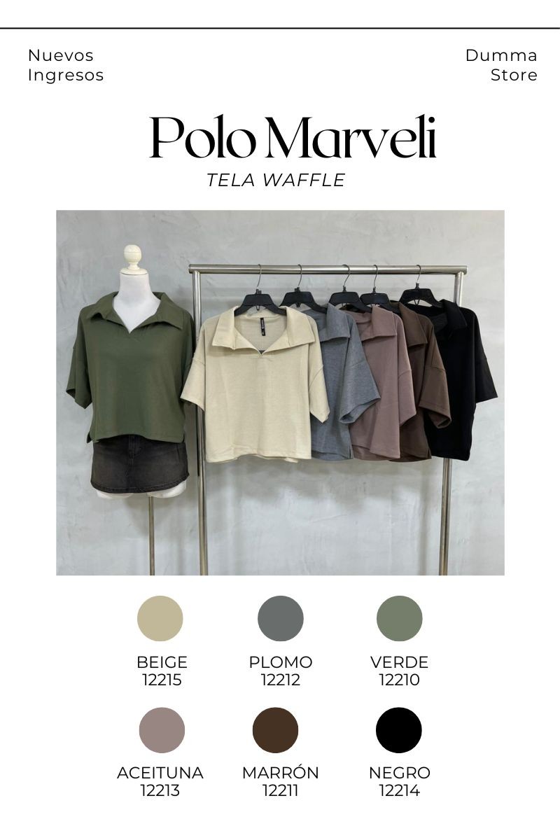 Polo Marveli en tela waffle es una prenda imprescindible para lograr un look casual, moderno y cómodo. Confeccionado en la mejor tela waffle, destaca por su textura suave, ligera y transpirable que brinda frescura y confort durante todo el día. Su diseño oversize con cuello tipo camisero aporta un estilo relajado y en tendencia, ideal para crear outfits versátiles combinándolo fácilmente. Tiene un cuello en forma de v y con aberturas en los costados inferiores.