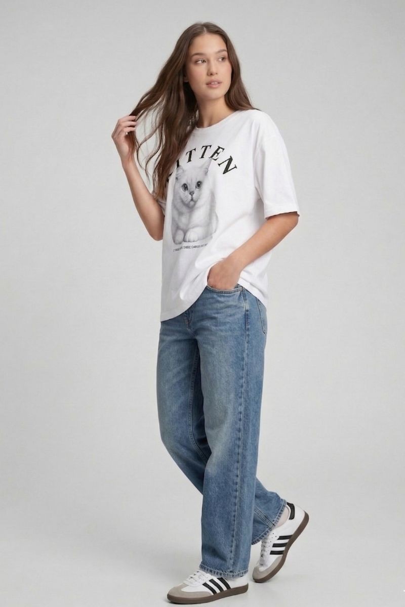 El Polo Kaja es una prenda imprescindible para un look casual y moderno, confeccionado en suave tela Jersey que brinda comodidad, frescura y excelente caída. Su corte oversize de manga corta aporta un estilo relajado y en tendencia, ideal para outfits urbanos y versátiles. Destaca por su estampado de gatito blanco con la palabra “Kitten” y detalle tipográfico minimalista, que añade un toque juvenil y cute al diseño. Perfecto para combinar con jeans, faldas o outfits streetwear, el Polo Kaja es la opción ideal para quienes buscan polos oversize para mujer, ropa juvenil moderna y prendas cómodas para uso diario.