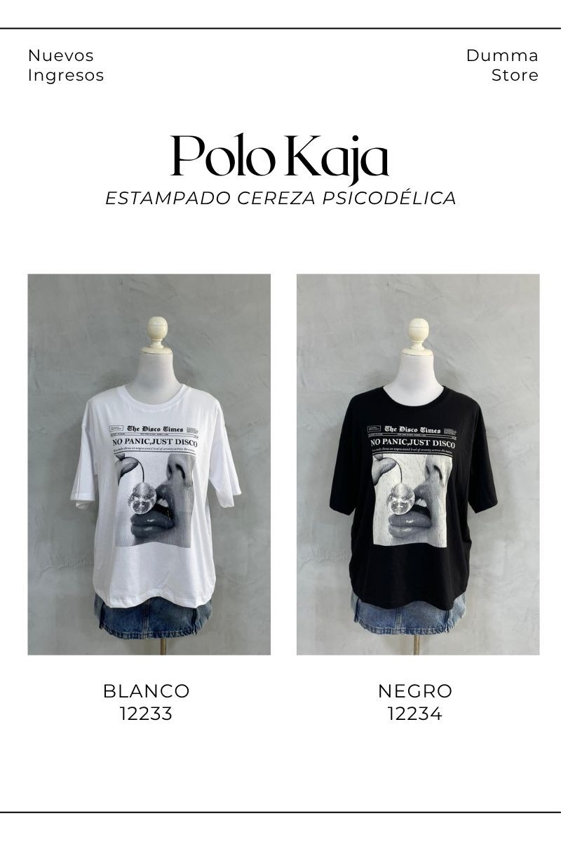 El Polo Kaja combina estilo creativo y actitud urbana en una prenda única, confeccionada en tela Jersey suave y ligera que garantiza comodidad y frescura durante todo el día. Su corte oversize de manga corta ofrece un fit relajado y moderno, ideal para looks desenfadados con personalidad. Resalta por su estampado de cereza psicodélica en formato portada de periódico, un diseño llamativo y artístico que mezcla lo retro con lo trendy. Perfecto para elevar cualquier outfit con un toque original, este polo es ideal para quienes buscan polos oversize para mujer, ropa juvenil con estilo y prendas en tendencia que destacan.