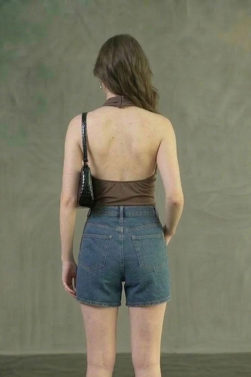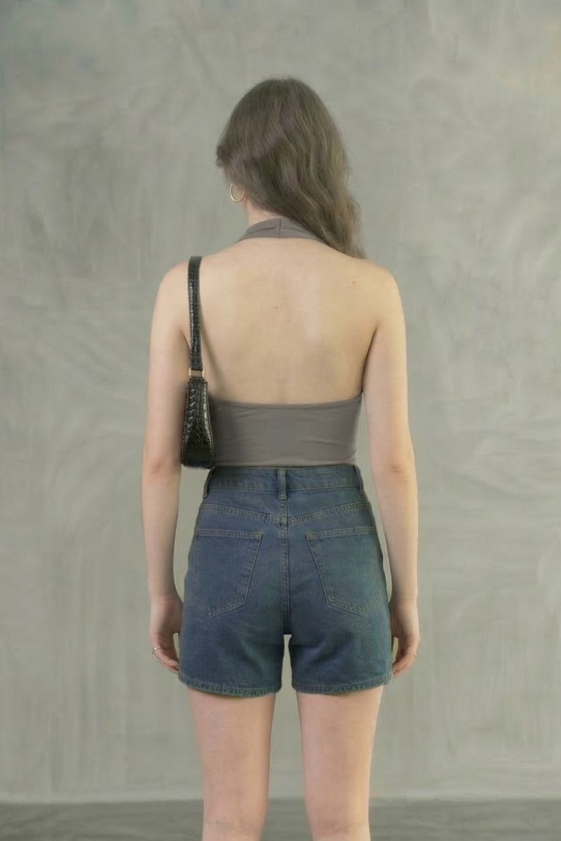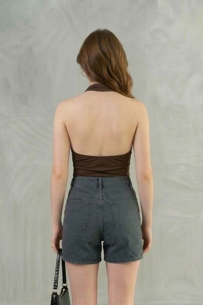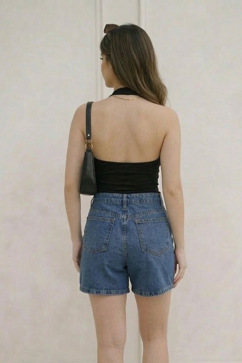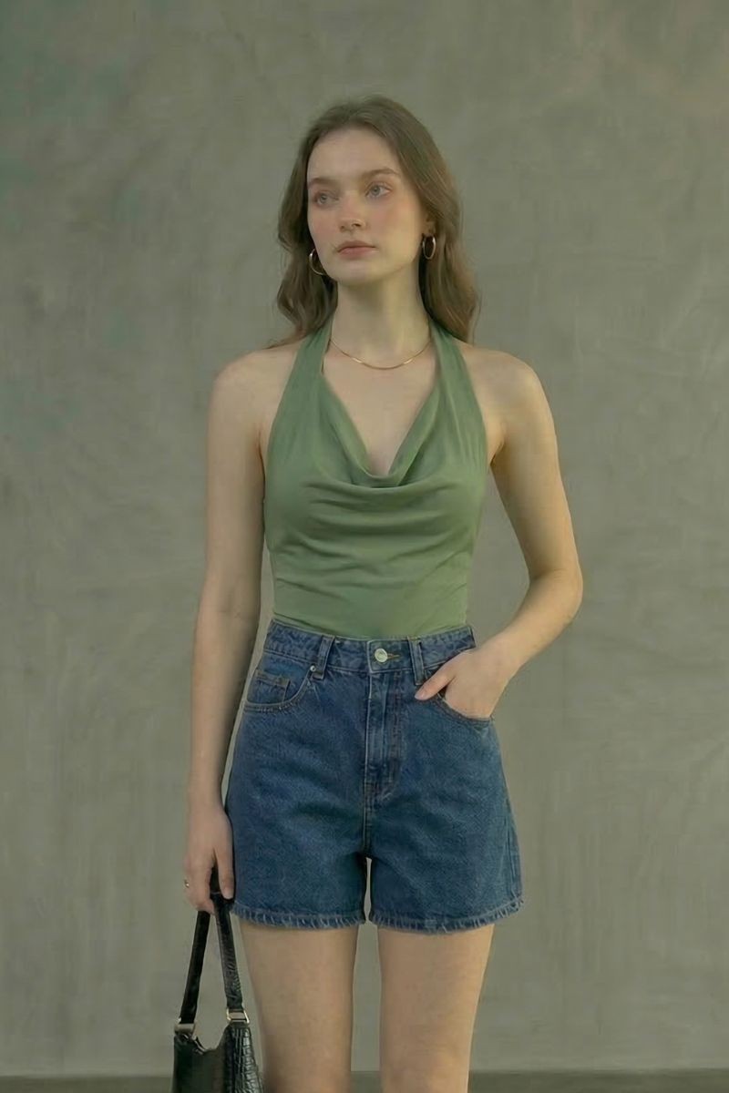 Polo Sarahi en tela suplex con cuello halter y elástico en la espalda, diseñado para un ajuste cómodo que realza la silueta.Un top moderno y versátil, ideal para crear outfits frescos y estilosos en cualquier ocasión.