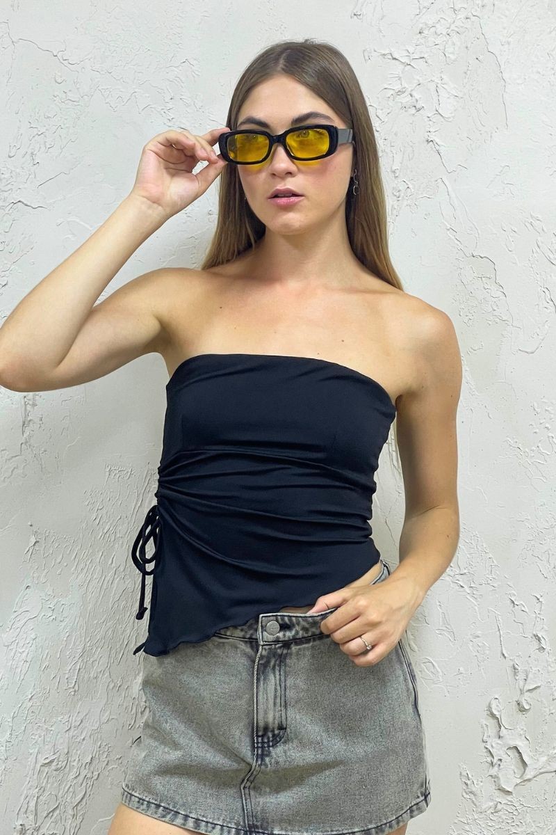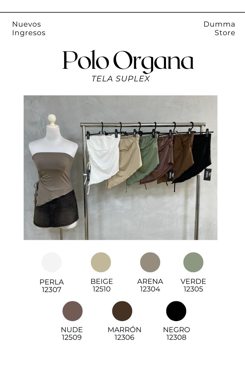 POLO ORGANA EN TELA SUPLEX, STRAPLESS CON AMARRE AL COSTADO PARA UN MEJOR AJUSTE.
