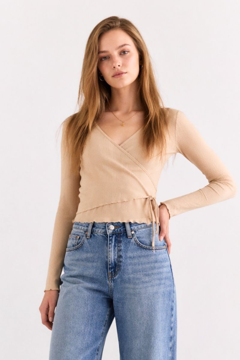 Nuestro polo Witni es una prenda imprescindible para elevar tu estilo con un toque moderno y femenino. Confeccionado en tela rib acanalado, este polo de manga larga se adapta perfectamente al cuerpo, brindando comodidad y un fit favorecedor. Su diseño abierto cruzado con amarre en el lado izquierdo resalta la silueta de forma sutil, mientras que las mangas acampanadas aportan un aire elegante y en tendencia. Ideal para crear outfits versátiles, el polo Witni es perfecto para looks casuales o más sofisticados, combinándolo con jeans, faldas o pantalones de tiro alto.