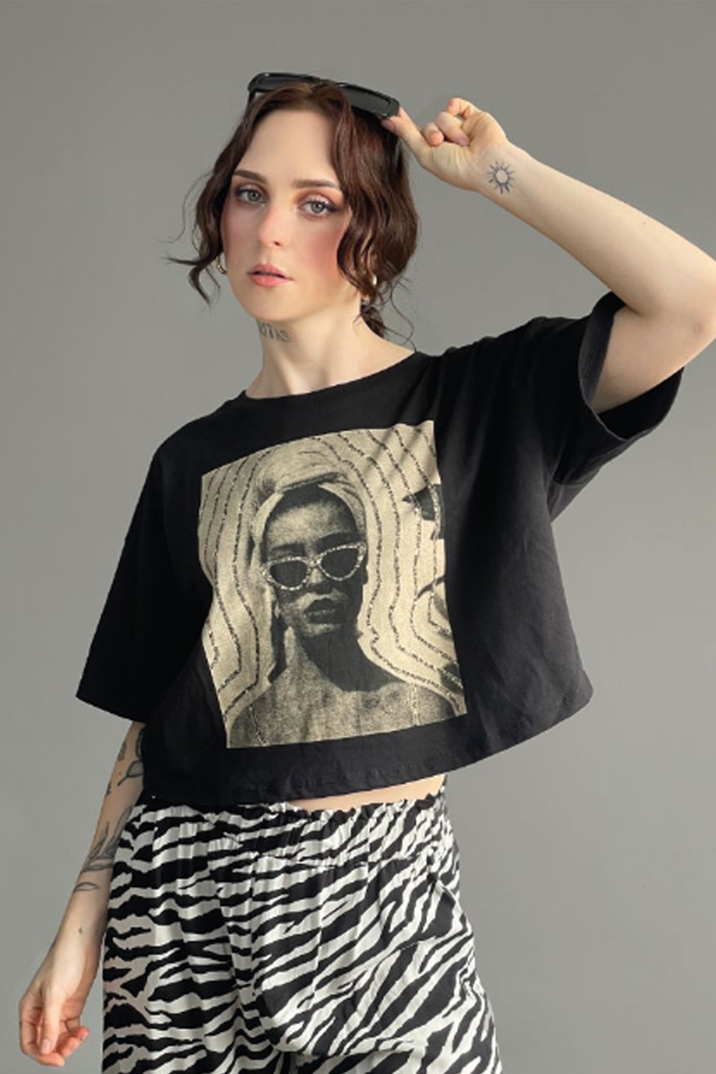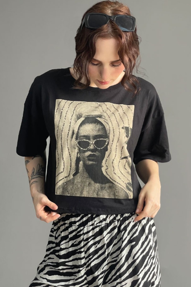 POLO MANGA CORTA CON CUELLO REDONDO Y ESTAMPADO EN LA PARTE FRONTAL